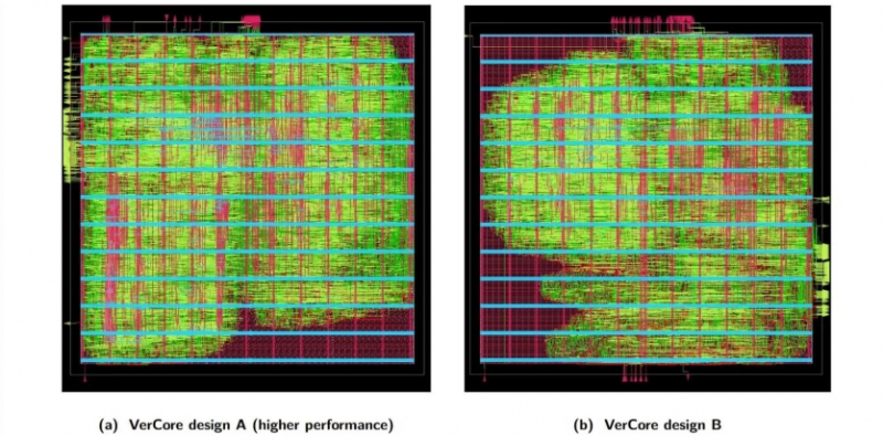 Результатом стало отримання файлу GDSII, який можна використати для створення реального ядра CPU за допомогою ПЗ EDA. Фізично VerCore не існує, його працездатність була підтверджена у симуляції з використанням еталонного симулятора архітектури RISC-V, Spike.